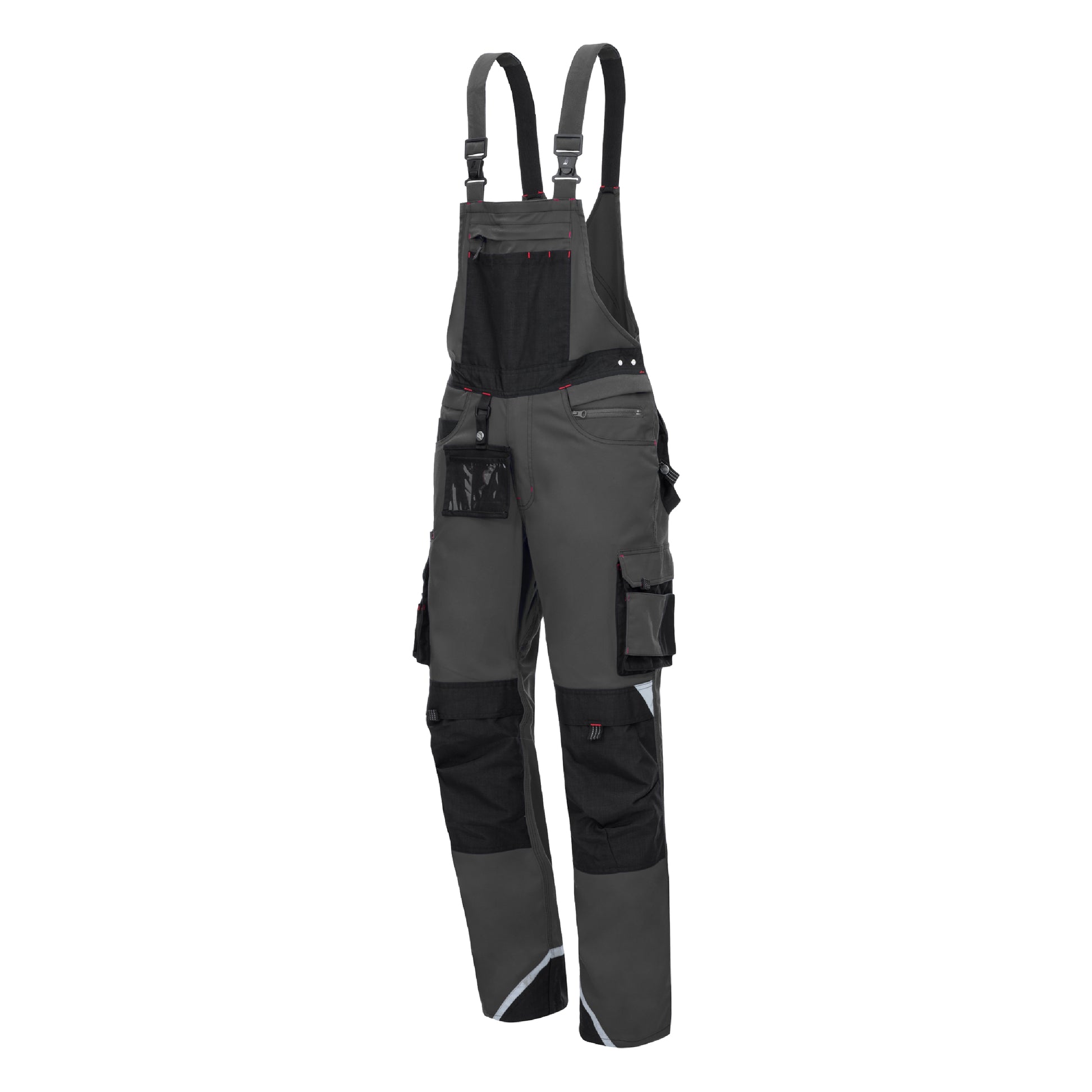 NITRAS MOTION TEX PRO FX byxbyxor i grått/svart (färgkod: 1210) imponerar med sitt innovativa material som andas med en vikt på 280 g/m² och särskilt hög bärkomfort tack vare 2-vägsstretch och stretchigt midjeband. Robusta förstärkningar i grenen samt CORDURA® på ben-, knä- och bakfickor, den yttre haklappsfickan och ärmsluten säkerställer en lång livslängd. Byxbyxorna är utrustade med en mängd praktiska fickor, bland annat lårfickor med lock, tumstocksficka, innerficka med haklapp med YKK-dragkedja och knäfickor för stoppning. 3M Scotchlite™ reflekterande material ökar synligheten och därmed säkerheten på arbetsplatsen. Elastiska remmanschetter, robusta clips, en justerbar hammarögla, D-ring och ID-korthållare kompletterar funktionerna. Premiumkvaliteten är certifierad enligt OEKO-TEX STANDARD 100® och erbjuder en modern komfortpassform. Verktygsväskor 770P och knäskydd 76K (EN 14404) finns som tillval.