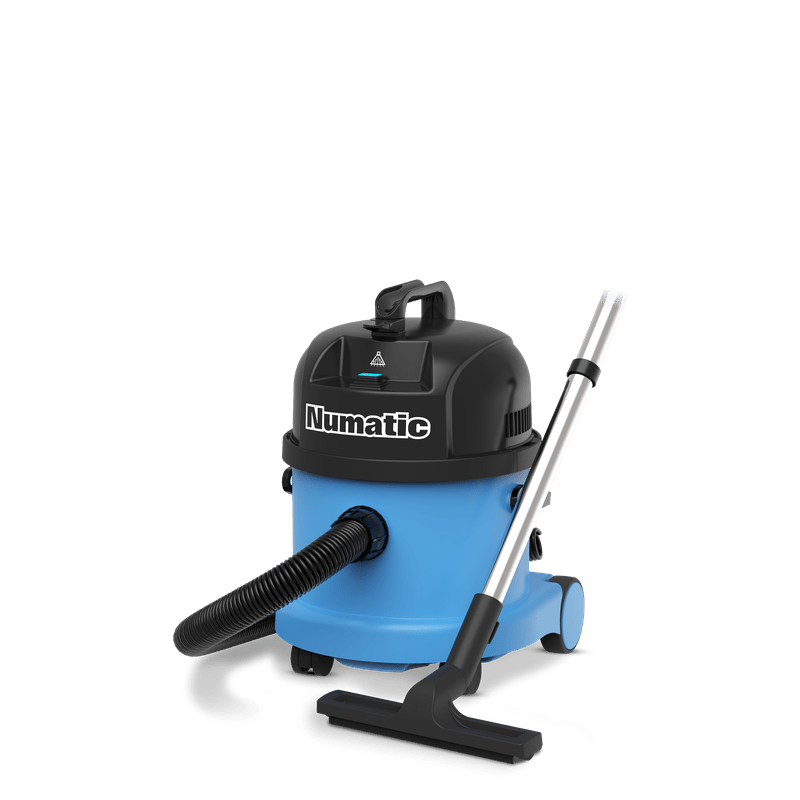 Kraftfull vattendammsugare från Numatic i blått, inklusive praktiskt tillbehörsset AS15 med 32 mm diameter – idealisk för professionella rengöringsuppgifter.